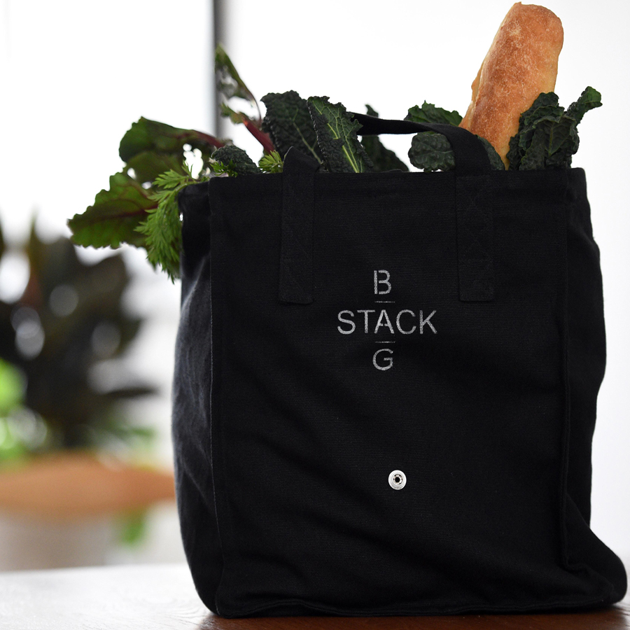 Bag Stack is a set of two hemp stackable shopping bags. The bags are designed to stack and unstack inside each other, allowing easy packing of goods.